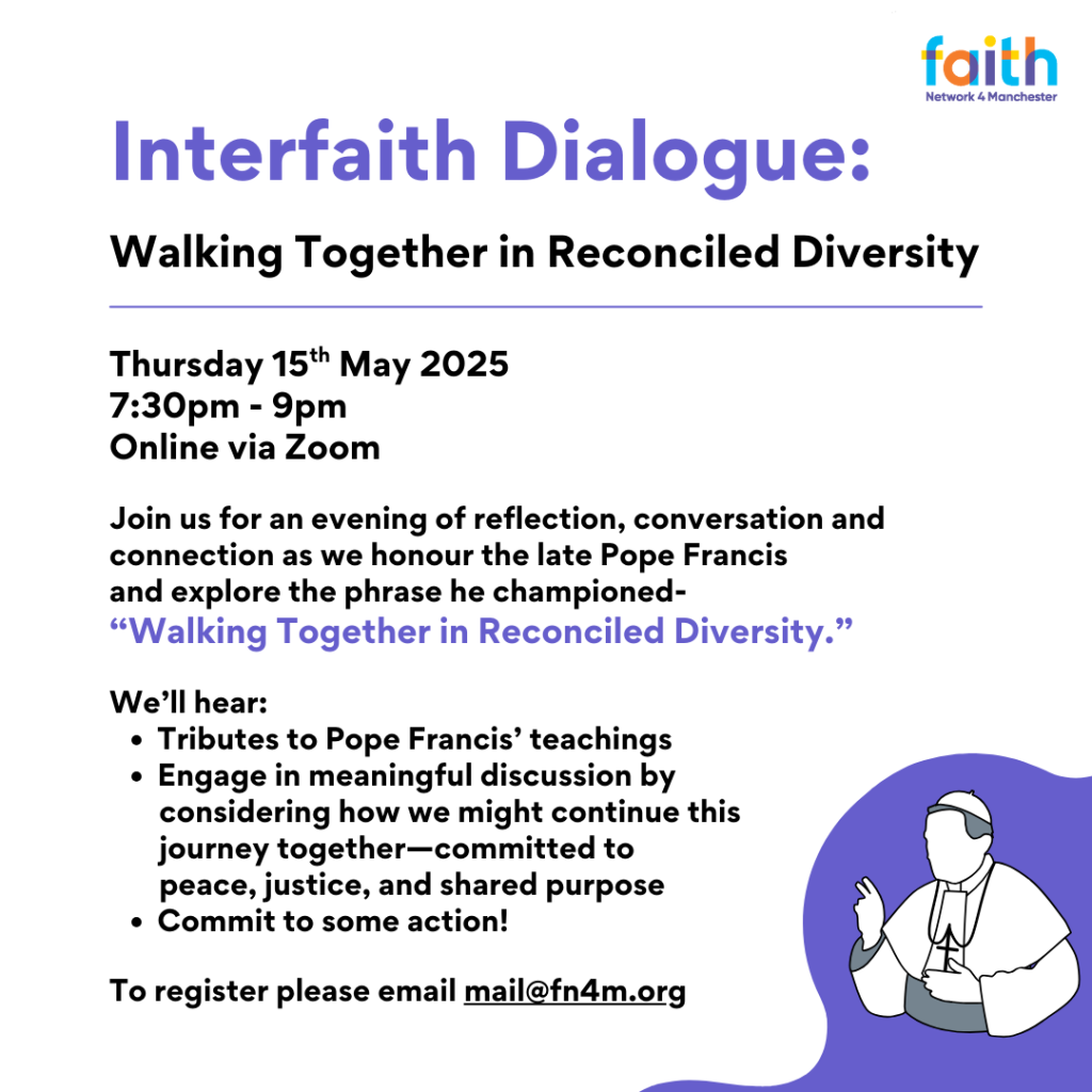 Join us on Thursday 15th May from 7:30pm-9pm for an evening of reflection, conversation, and connection as we honour the late and beloved Pope Francis…